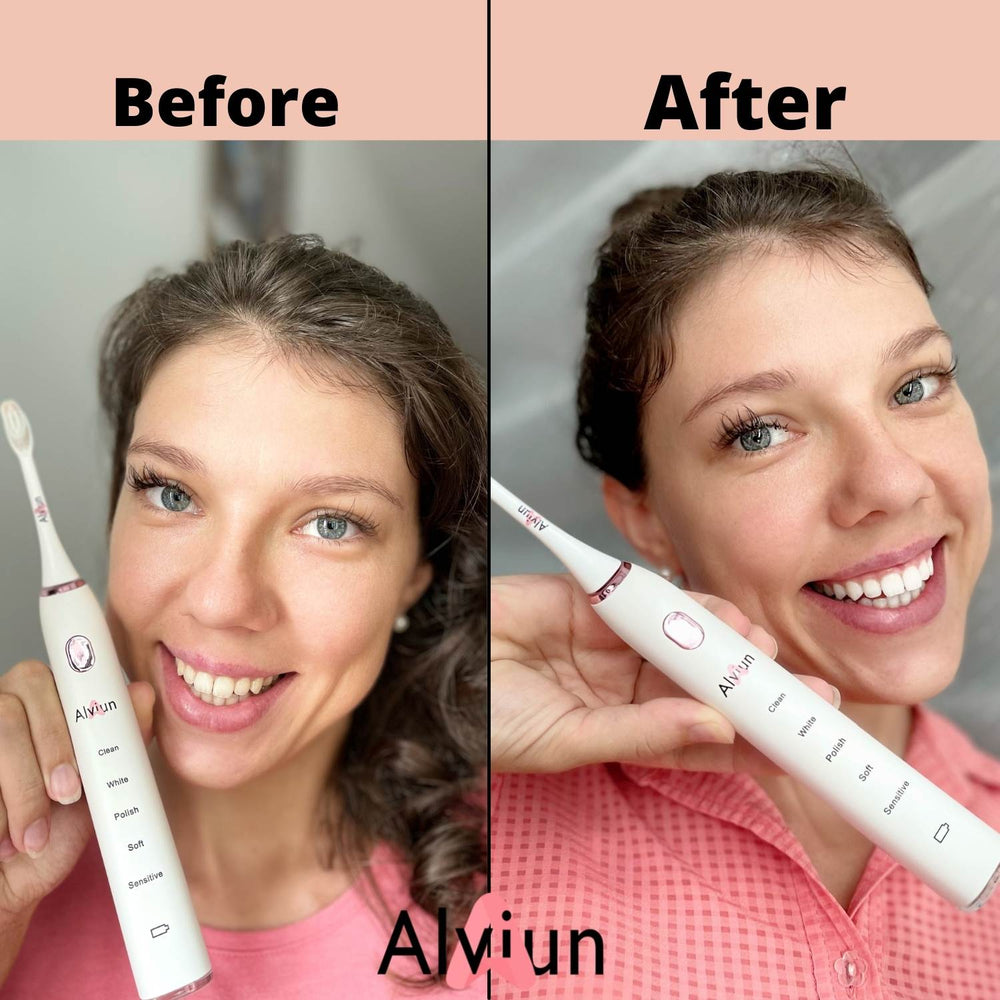 No bleeding gums = PERFECTION! I always have issues finding a good electric toothbrush to help my oral care concern. Alviun is my best discovery as the toothbrush is very gentle for your teeth yet powerful enough to wipe out your stains, plaque, etc. - Sophia B.