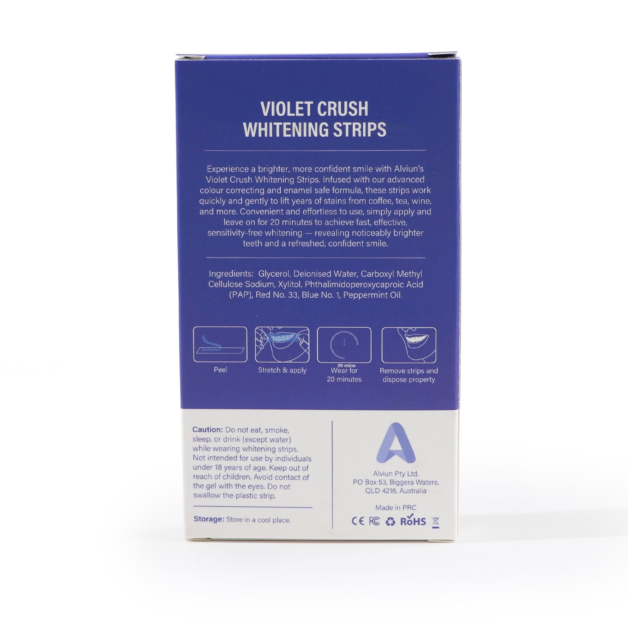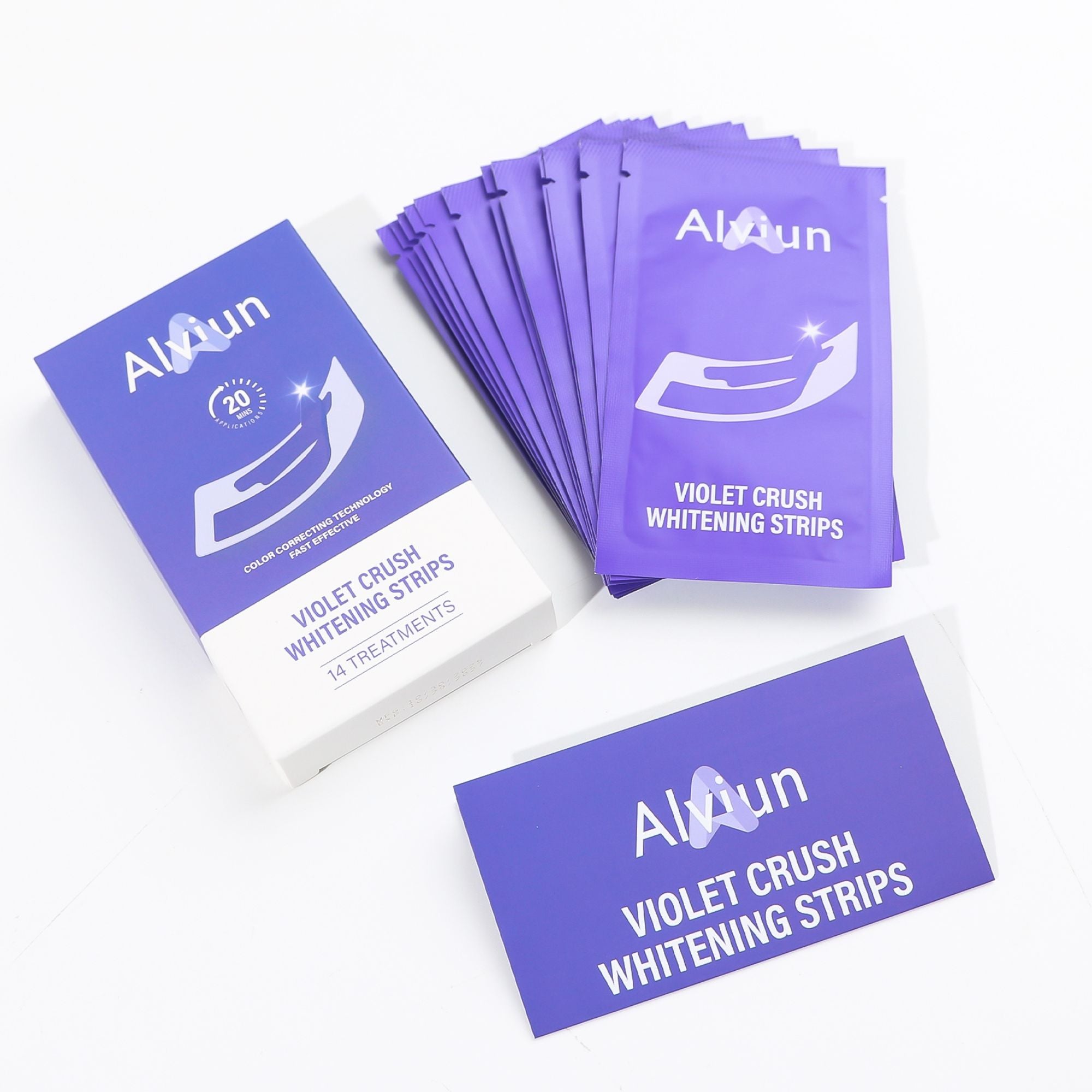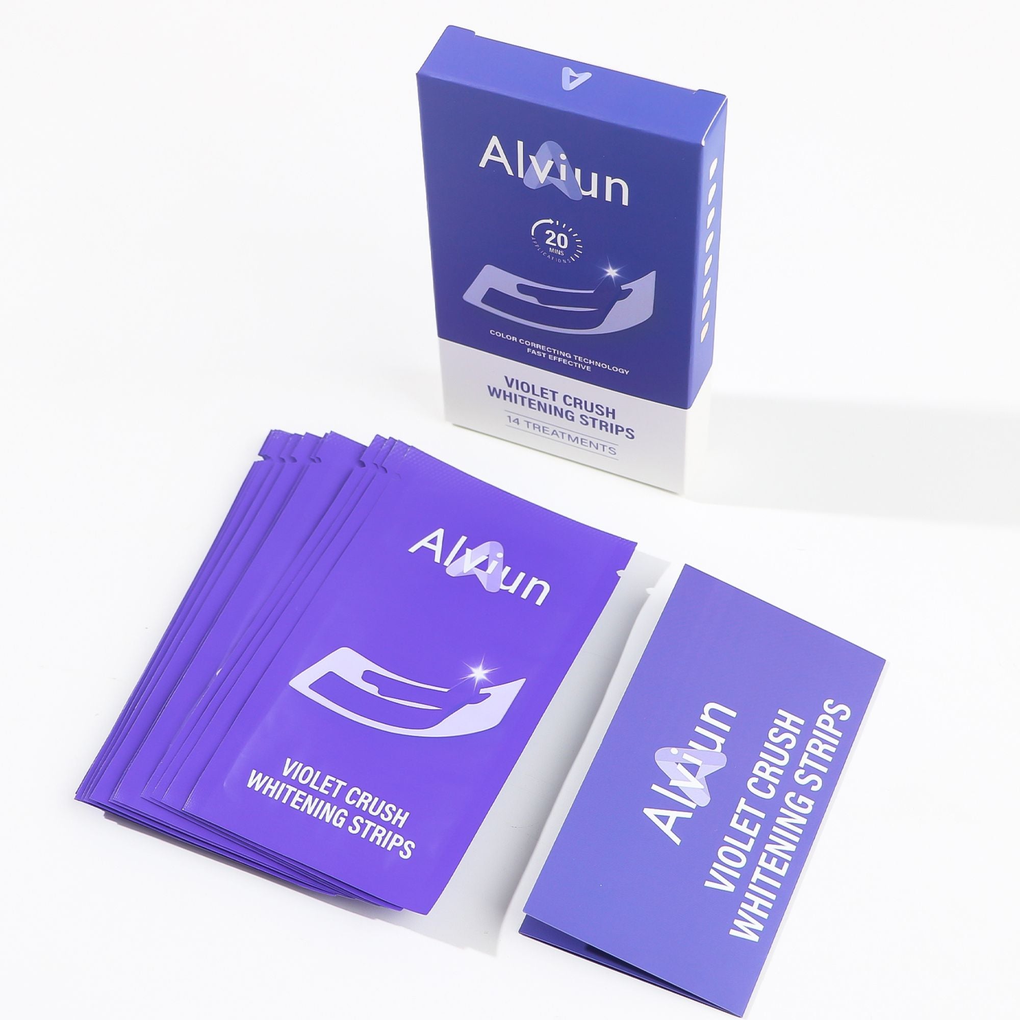 Achieve a brighter, more confident smile with Alviun’s Violet Crush Whitening Strips — a 14-treatment system powered by advanced violet colour-correcting technology. Each strip gently lifts stains and instantly neutralises yellow tones in just 20 minutes, all while using an enamel-safe, sensitivity-free Violet Crush formula. The ultra-thin stretch-fit design stays comfortably in place, leaving your smile feeling fresh with a clean peppermint finish.